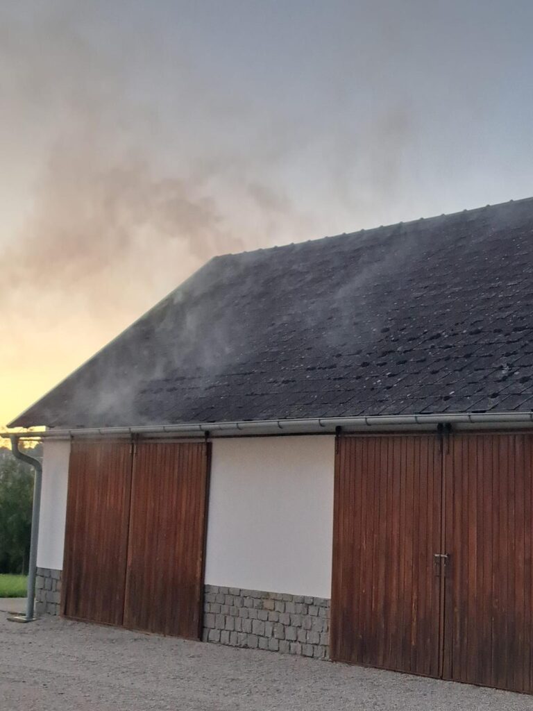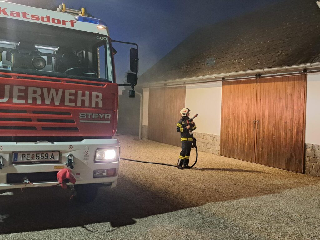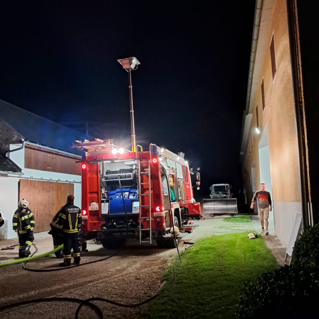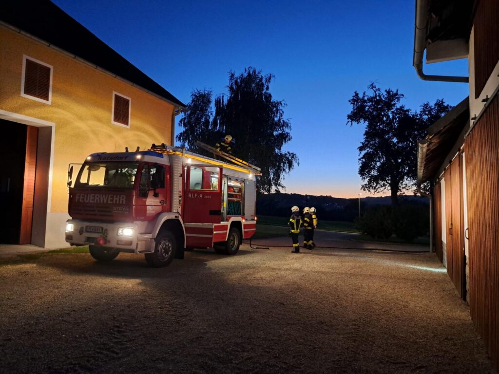 Ein Hof brannte gestern Abend in Neubodendorf. Nach der Absicherung wurde die Wasserversorgung von einem Hydranten aufgebaut. Währenddessen mussten die eingeschlossen Personen von einem Atemschutztrupp gerettet werden. Das Nebengebäude musste geschützt werden, um ein Übergreifen der Flammen zu verhindern.